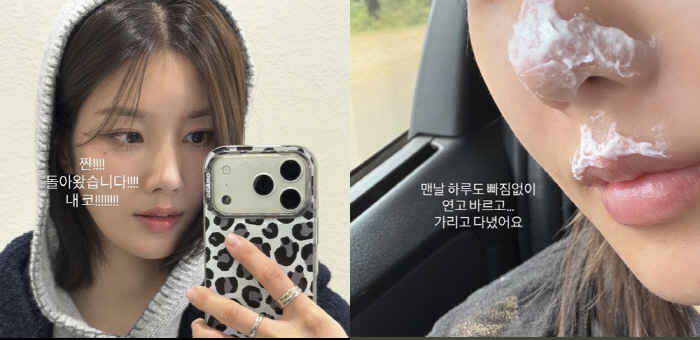 그리고 되찾은 미소. 권은비는 "한국 와서 피부과 간 이슈. 내 코는 짠! 돌아왔다. 내 코"라면서 현재의 코 상태를 공개했다.