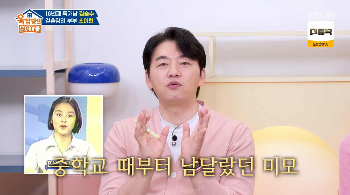 김승수는 또 자주 유부남으로 오해받았다면서 "예능 출연을 하면서 혼자 사는 모습을 보여드리니 지금은 괜찮아졌다. 하지만 전에는 99% 유부남으로 오해받았다. 애도 장성한 줄 알더라"라며 억울해했다. 성정체성에 대해 오해도 받았다면서 "세상에서 여자가 제일 좋다"라고 강조했다.