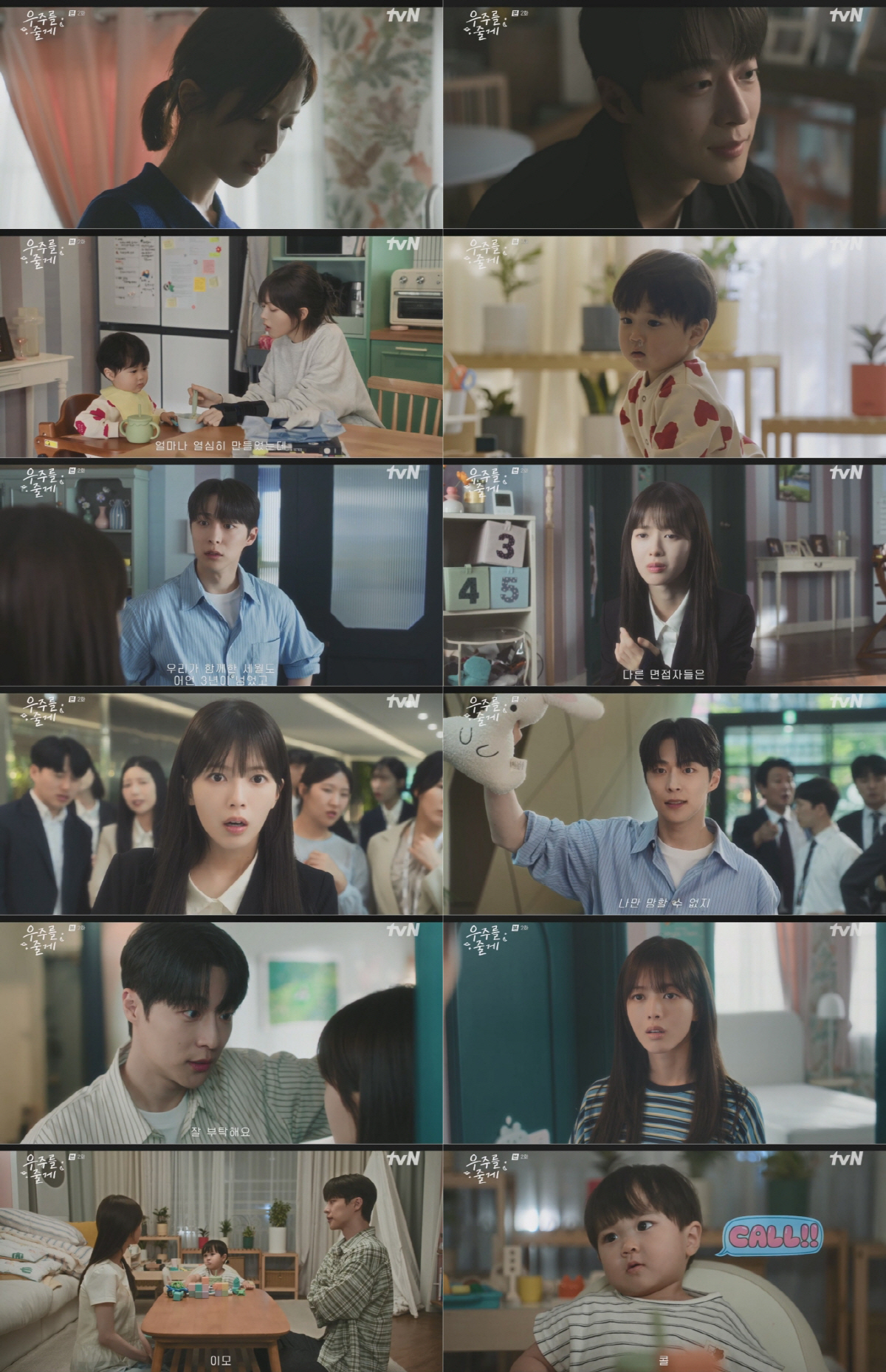 지난 5일 방송된 tvN 수목드라마 '우주를 줄게'(수진·신이현 극본, 이현석·정여진 연출) 2회에서는 조카 우주(박유호)를 돌보게 된 '육아 초보' 선태형(배인혁)과 우현진(노정의)의 완전히 뒤바뀐 일상이 그려졌다. 여기에 서로 윈윈하는 조건을 내걸고 동거를 합의하며 공동 육아 계약을 체결하는 두 사람의 모습은 본격 한집살이를 시작할 이들의 이야기에 대한 기대감을 고조시켰다.