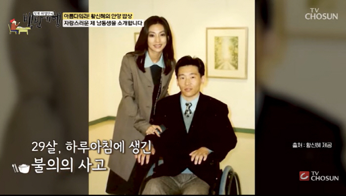 황신혜의 남동생은 손이 아닌 발, 입으로 그림을 그리는 구족화가. 황신혜는 "29살 때 교통사고가 나서 목을 다쳤다. 그래서 목 밑으로 신경이 다 없어서 입으로 그림을 그린다"고 밝혔다.