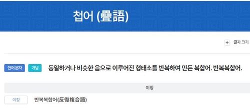 4. 한국민족문화대백과사전 첩어(疊語) - https://encykorea.aks.ac.kr/Article/E0056214