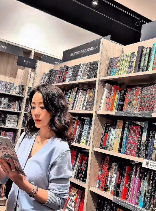 영상에는 캐나다의 한 서점에서 책을 보는 윤손하의 모습이 담겨 있다. 전성기 시절과 다를 바 없는 미모가 시선을 사로잡는다.