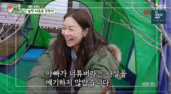 송해나의 아버지는 딸을 보자마자 "영상 하나 찍자"고 제안하며 카메라를 꺼냈다. 그는 '주말농막꾼'이라는 유튜브 채널을 운영 중이며, 현재까지 총 111개의 영상을 올렸다고 밝혔다.