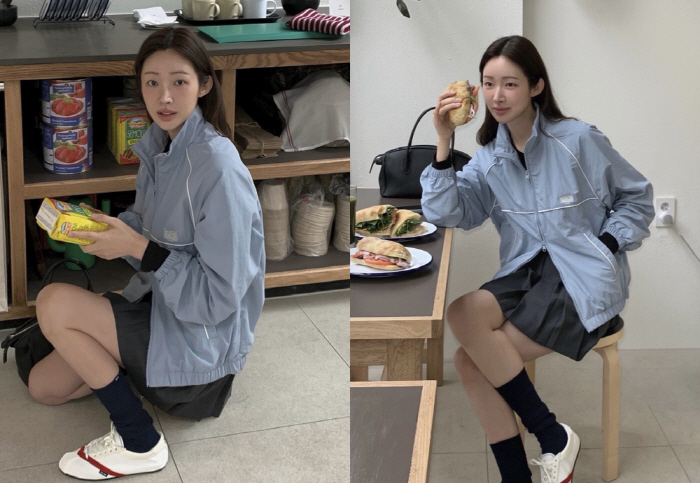 이때 그녀의 스타일링에 시선이 쏠렸다. 차정원은 배우 활동보다 그동안 감각적인 스타일로 패션 인플루언서로 주목을 받았던 바. 이날은 하늘색 윈드 재킷에 치마를 매치, 여기에 검은색 긴 양말과 하얀색 운동화로 포인트를 준 스타일링을 선보여 눈길을 끈다.