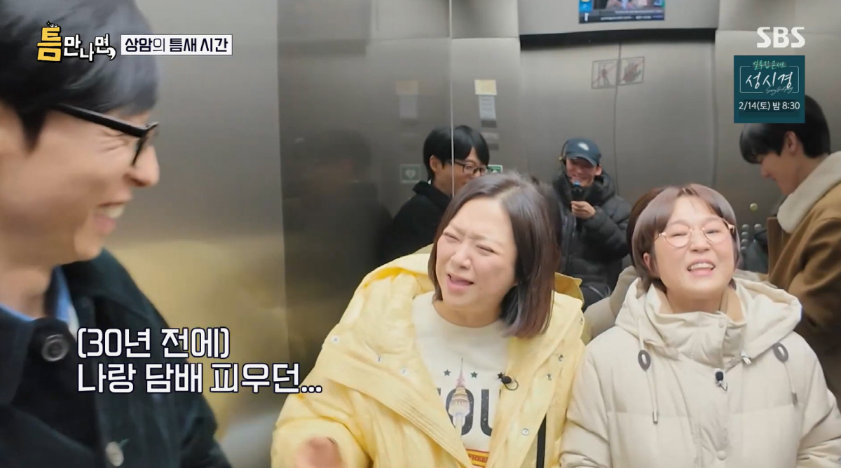 유재석은 찐친 김숙이 내시경 검사를 앞둬 식사를 못한다고 하자 "우리는 고기 구워 먹어야지"라며 놀렸다. 김숙이 "많이 변했다. 메뚜기 선배 전에는 순했는데 악덕해졌다"라며 서운해했고 유재석은 돌연 "나랑 담배를 같이 피운 담친(담배 함께 피우는 친구)이었다"라며 김숙과의 추억을 언급해 웃음을 자아냈다.