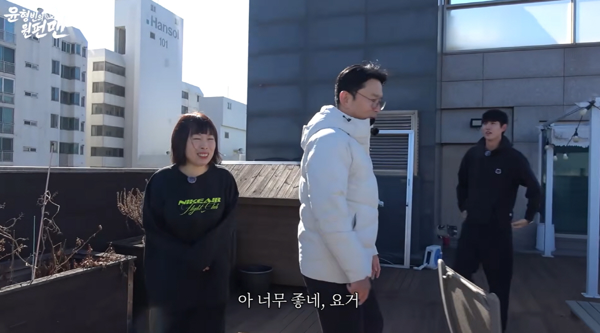 오나미, 박민 부부의 집을 찾아간 윤형빈은 현관을 들어서자마자 "아니 펜트하우스에 사네?"라며 감탄했고 오나미는 "테라스가 있는데 테라스가 진짜 좋다"라고 말했다.