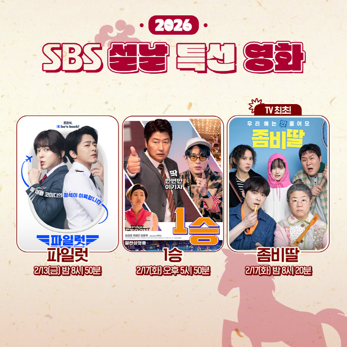 [스포츠조선 조민정 기자] SBS가 2026년 설 연휴를 맞아 안방극장을 책임질 특선영화 3편을 확정했다. 극장가 흥행작부터 화제의 원작 기반 작품까지, 장르와 분위기를 달리한 라인업으로 설 연휴 시청자 공략에 나선다.