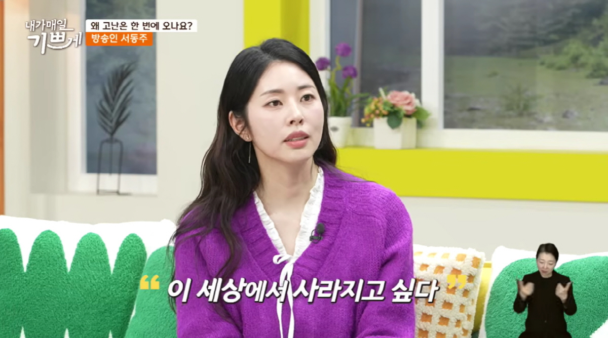 서동주는 당시를 회상하며 "한 가지씩 차례대로 일어났다면 견딜 만했을 텐데, 모든 일이 한꺼번에 몰려와 너무 힘들었다. '이 세상을 떠날 때가 됐나', '사라져야겠다'는 생각을 많이 했다"고 고백해 안타까움을 더했다.