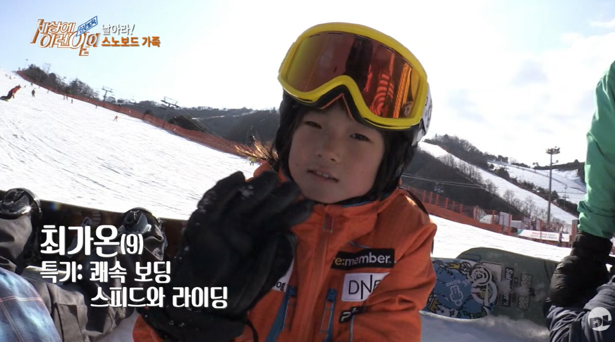 셋째 최가온은 "완벽한 자세와 기술을 갖춘 말괄량이 보더", "특기는 쾌속 보딩, 스피드와 라이딩"이라는 자막과 함께 소개되며 어린 나이에도 자유자재로 설원을 누비는 모습을 보여줬다.