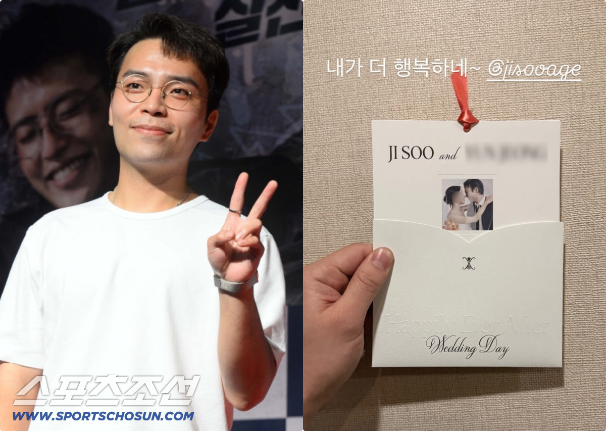 공개된 사진에는 결혼을 앞둔 김지수의 청첩장이 담겨 있어 눈길을 끌었다. 청첩장 속 김지수는 턱시도를 차려입고, 웨딩드레스를 입은 예비 신부와 다정하게 코를 맞댄 채 로맨틱한 분위기를 자아냈다. 서로를 향한 애정 어린 눈빛에서 예비 부부의 설렘이 고스란히 전해진다.