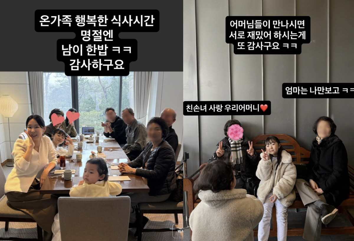이어 "전부터 갈비찜에 한상 한가득 차려서 결국 아들 며느리 손주들까지 다 해먹여주셨는데 이제부터는 명절에 여행 가라고 명절 전에 식사나 한번 하시자고 하신다"라며 시부모님의 배려에 고마움을 전했다.