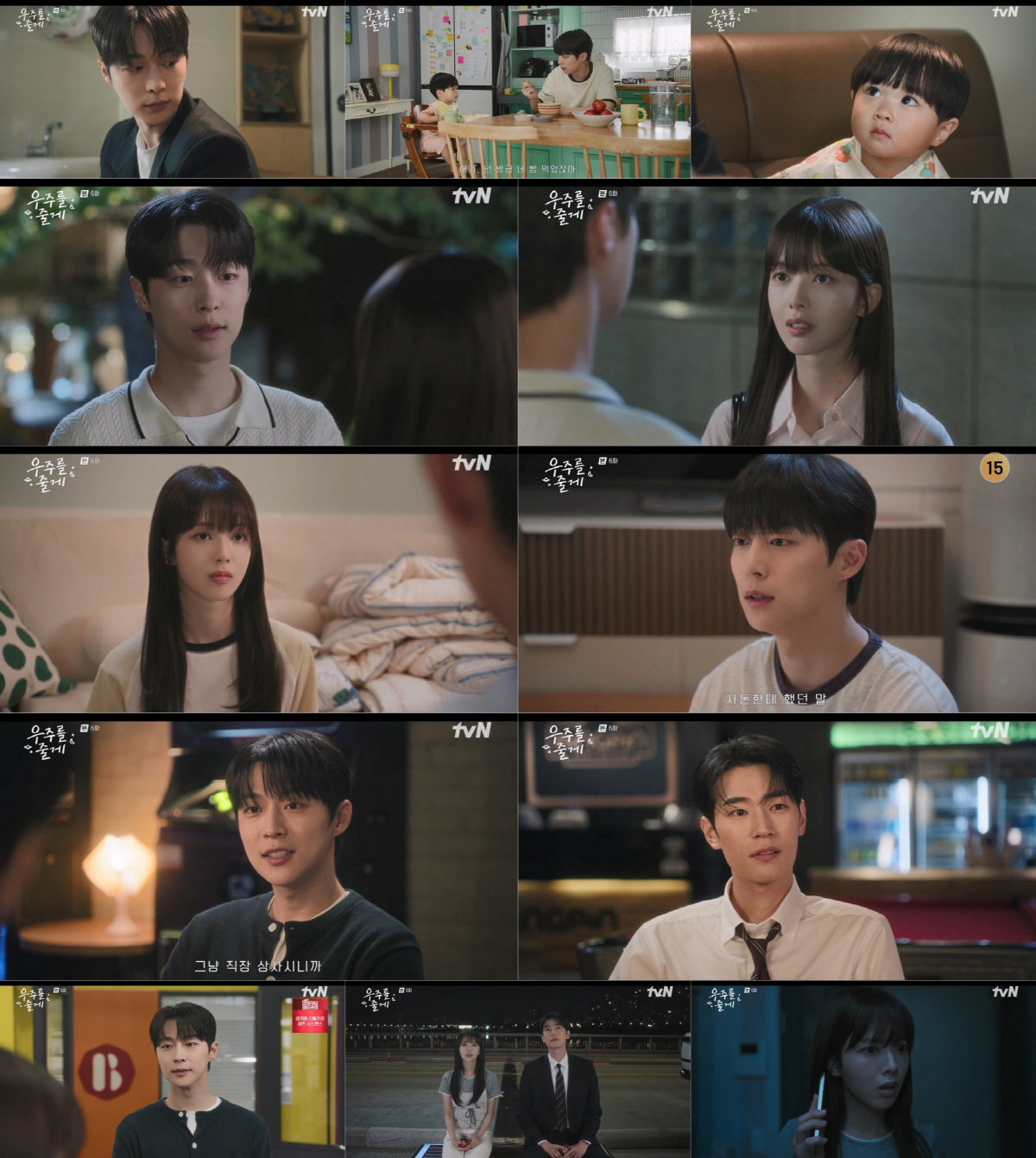 19일 방송된 6회에서는 선태형(배인혁)과 우현진(노정의) 사이에 미묘한 긴장감이 감돌았다. 고백 이후 두 사람은 서로를 의식하며 어색한 기류를 이어갔다. 우현진은 사돈을 남자로 생각해 본 적 없다고 선을 그었지만, 첫사랑 박윤성(박서함)에 대한 질문에는 쉽게 답하지 못했다. 머릿속엔 '우주'와 '정규직 전환'뿐이라며 애써 감정을 부정했지만 혼란은 숨기지 못했다.