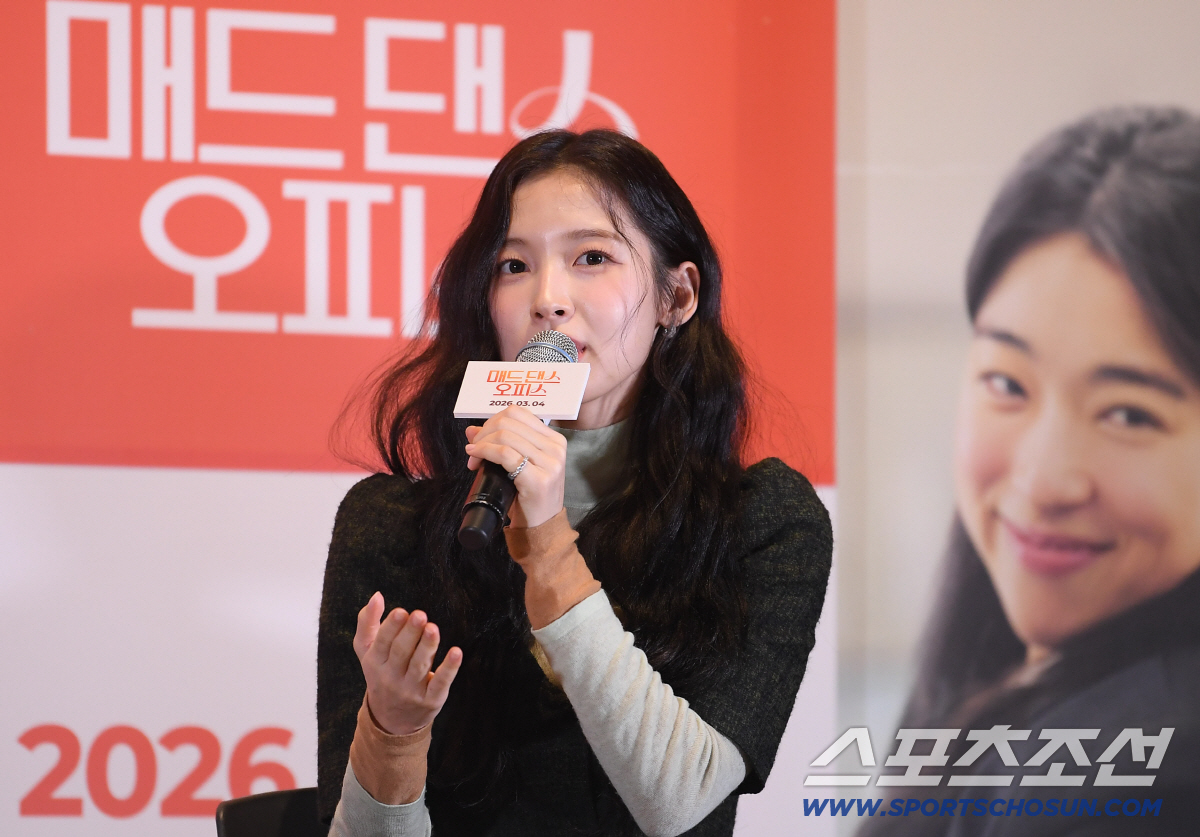 영화 '매드댄스오피스' 언론 시사회 및 기자간담회가 24일 오후 서울 용산구 CGV아이파크몰에서 열렸다. 배우 아린 질문에 답하고 있다. 정재근 기자 cjg@sportschosun.com