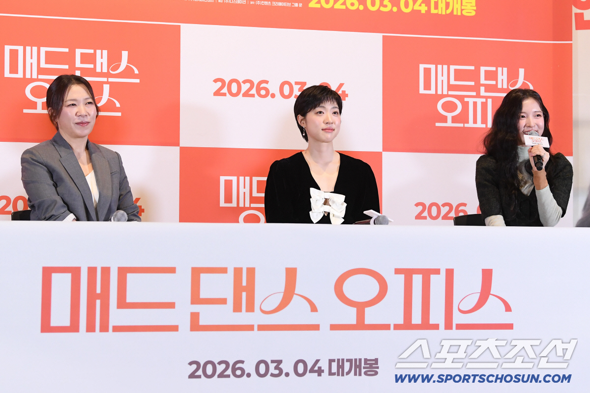 영화 '매드댄스오피스' 언론 시사회 및 기자간담회가 24일 오후 서울 용산구 CGV아이파크몰에서 열렸다. 배우 염혜란, 최성은, 아린이 질문에 답하고 있다. 정재근 기자 cjg@sportschosun.com