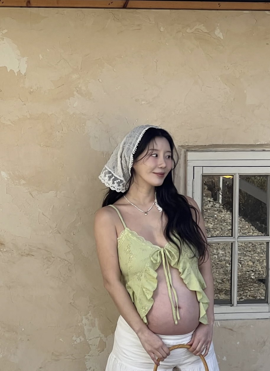 나비는 특히 과감한 브라렛 패션으로 만삭 D라인을 뽐내 눈길을 사로잡았다. 임신 중에도 군살 없는 실루엣과 건강미 넘치는 자태가 감탄을 자아냈다. 인위적인 연출이 아닌, 자연광에 담긴 순간들이 따뜻한 분위기를 더했다.