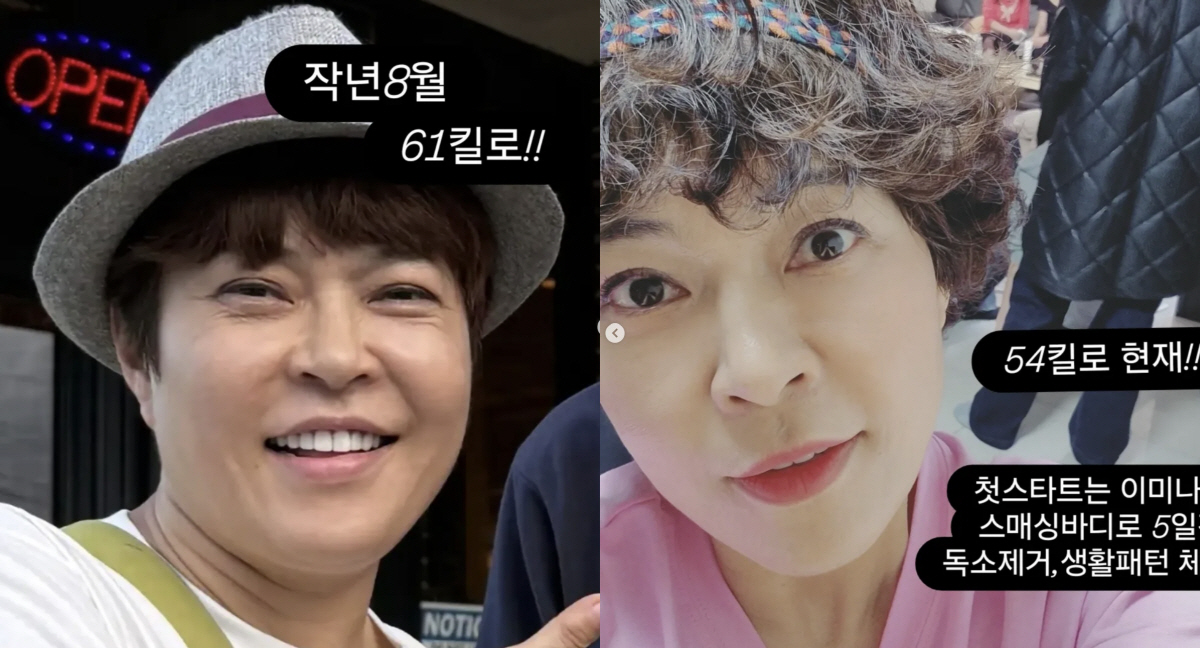 함께 공개된 사진 속에는 조혜련의 다이어트 전후 모습이 담겼다. 지난해 8월 61kg이었다는 조혜련은 6개월 만에 7kg 감량에 성공해 54kg을 달성했다. 다이어트 후 조혜련은 더 뚜렷해진 이목구비와 날렵한 턱선을 자랑해 눈길을 모은다.