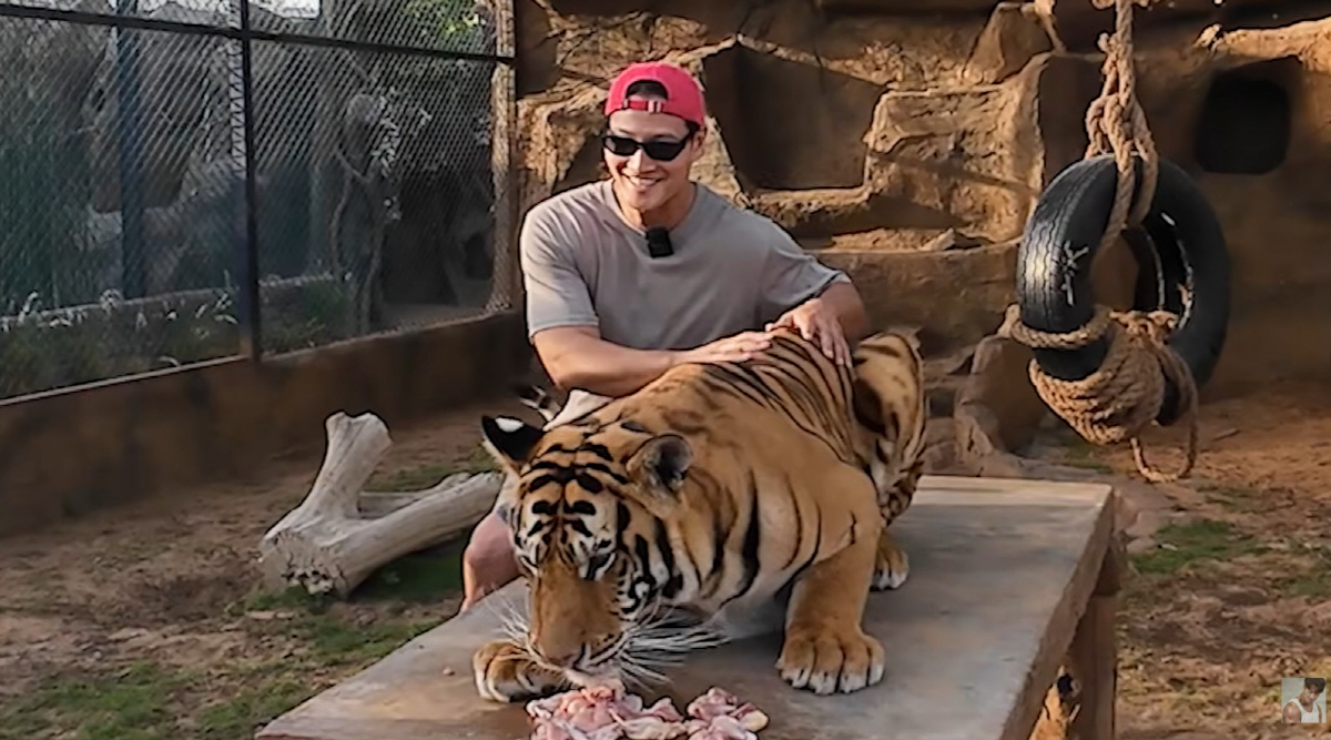 또한 호랑이와 사진을 찍고, 목에 뱀을 두르는 체험에 이어 라이거와 줄다리기 시합을 하는 특별한 경험도 했다. 이 과정에서 라이거는 엄청난 힘을 뽐내며 줄을 당겼고, 김종국은 줄에 끌려가며 "왜 이렇게 세냐"라며 놀라 웃음을 안겼다.