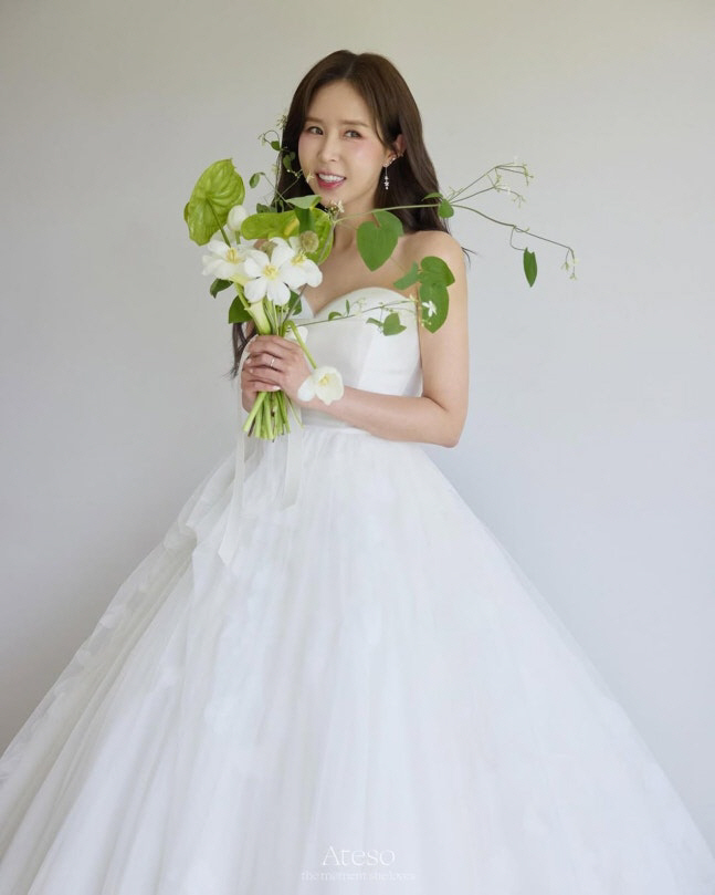 공개된 사진에는 신지가 순백의 웨딩드레스를 입고 포즈를 취하고 있다. 그는 다양한 디자인의 웨딩드레스를 소화하며 우아한 분위기와 사랑스러운 매력을 동시에 발산했다.