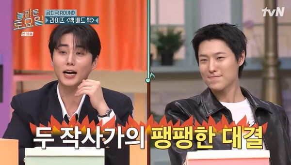 이어진 라운드에서는 즉석 미니 콘서트가 펼쳐졌다. 전주만 듣고 제목과 가사를 맞히는 게임에서 젝스키스 '커플', 임재범 '이 밤이 지나면', 자우림 '스물다섯 스물하나', 우즈의 '해가 될까'까지 라이브 무대가 이어졌다. 특히 영케이가 '해가 될까'를 정확히 맞히며 우즈와 함께 무대를 꾸미는 장면은 앞선 신경전을 씻어내는 화해의 순간으로 그려졌다.