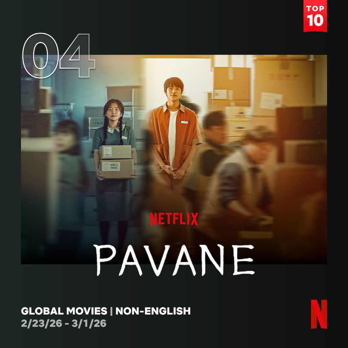 [스포츠조선 문지연 기자] '파반느'가 공개 2주차에 글로벌 TOP 10 비영어 영화 4위에 올랐다.