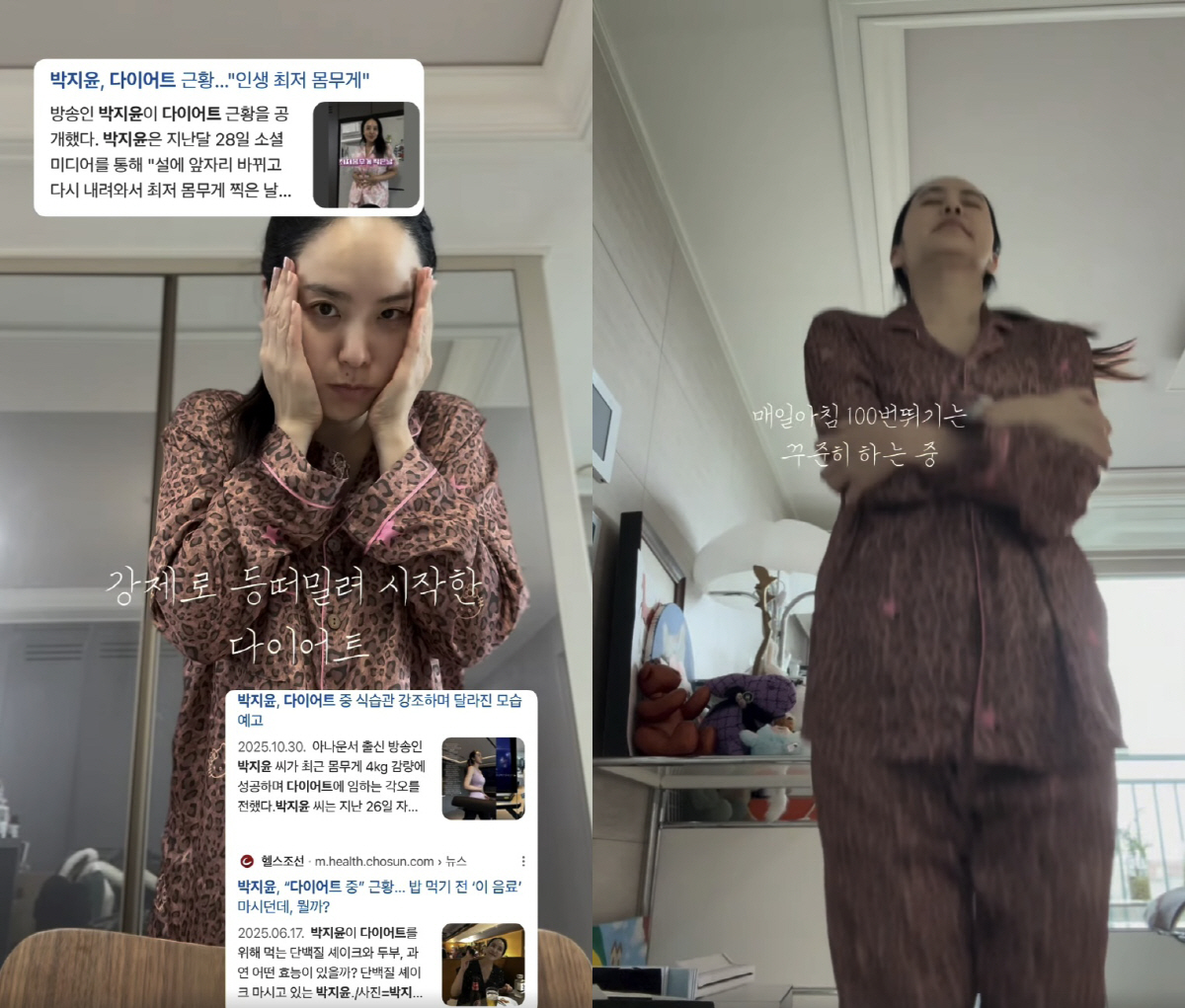 4일 박지윤은 자신의 SNS를 통해 "강제로 등 떠밀려 시작한 다이어트"라며 다이어트에 집중한 근황을 전했다.