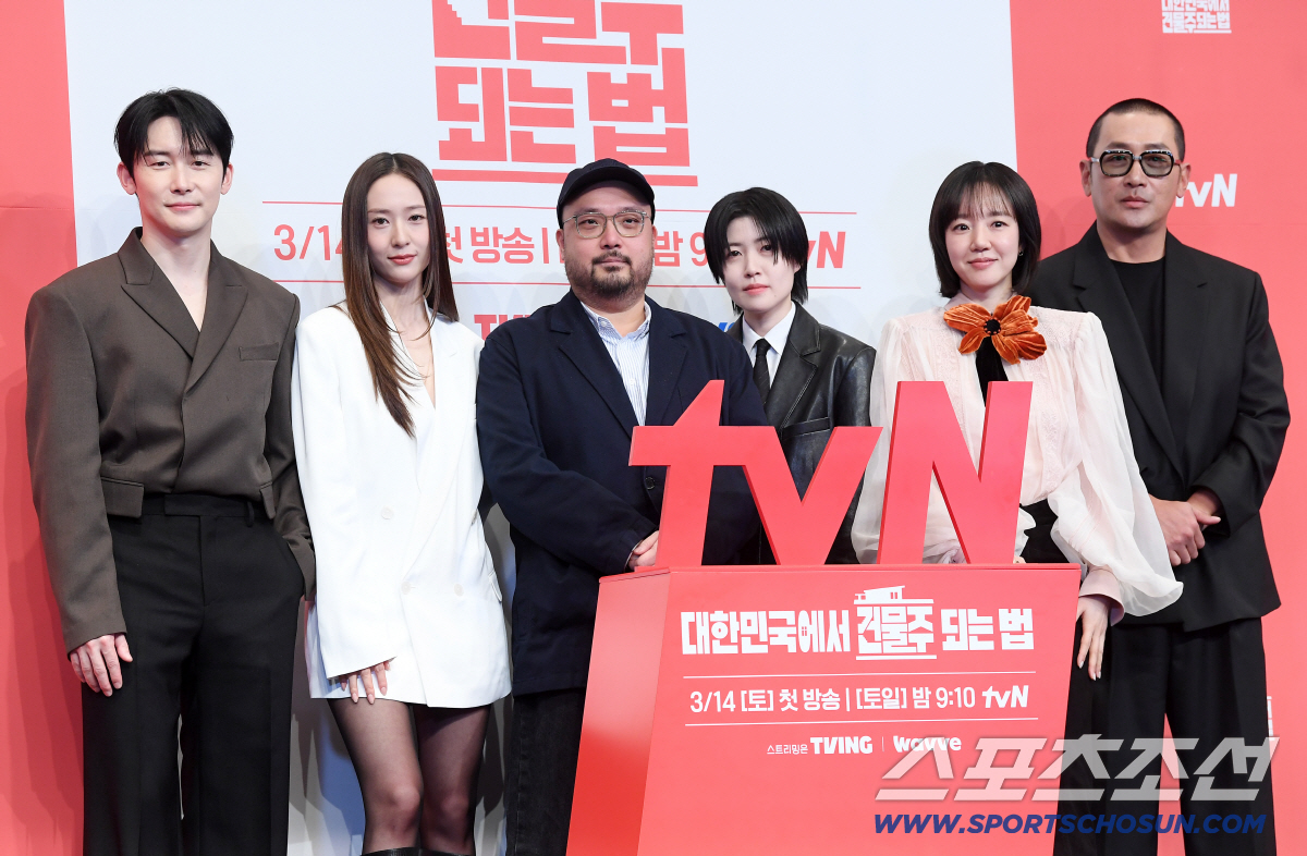 9일 오후 서울 구로구 신도림에 위치한 더 링크 호텔에서 tvN 새 토일드라마 '대한민국에서 건물주 되는 법'(오한기 극본, 임필성 연출, 이하 '건물주') 제작발표회가 열렸다. 이날 제작발표회에는 이날 '영끌'로 건물주가 되지만 어마어마한 빚더미에 앉은 가장 기수종 역의 하정우, 기수종의 강단 있는 아내 김선 역의 임수정, 기수종의 절친한 친구 민활성 역의 김준한, 민활성의 아내이자 부동산 큰손 엄마를 둔 전이경 역의 정수정, 재개발 사업을 추진 중인 리얼 캐피탈 실무자 요나 역의 심은경, 그리고 임필성 감독이 참석했다.