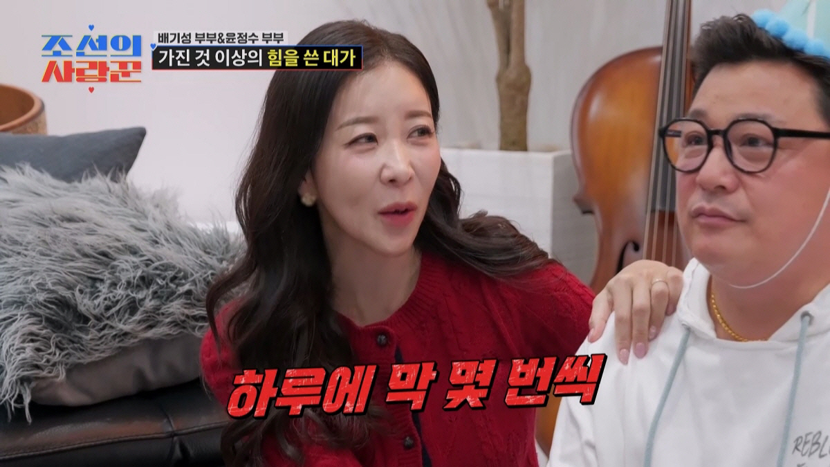 화기애애한 분위기 속에서 아내 이은비는 배기성의 입에 있던 전복을 직접 뺏어 먹는 돌발 스킨십을 선보였다. 이를 지켜보던 스튜디오의 황보라는 "미쳤나 봐! 괜찮아요?!"라며 화들짝 놀라 웃음을 자아냈다.