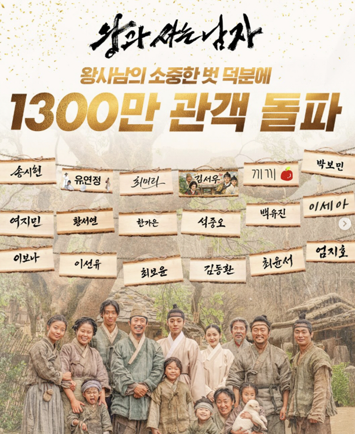 [스포츠조선 조지영 기자] 사극 영화 '왕과 사는 남자'(장항준 감독, 온다웍스·비에이엔터테인먼트 제작)가 1300만 관객까지 돌파하며 다시 한번 신기록을 추가했다.