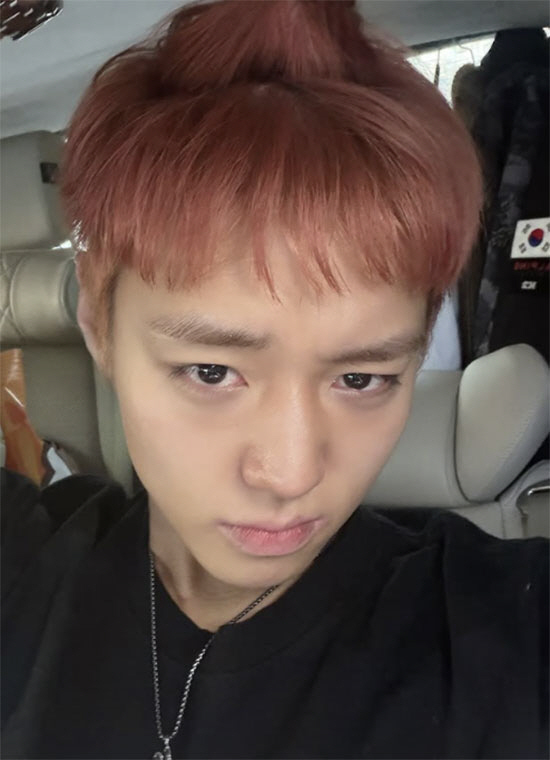 공개한 사진은 차 안에서 셀프 카메라로 찍은 모습이다. 특히 박지훈은 붉은 컬러로 염색을 해 달라진 분위기를 자아낸다.