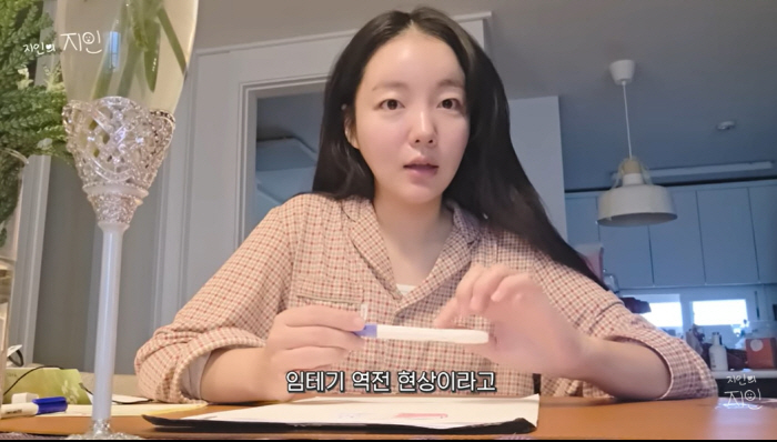 하지만 문지인은 임신을 확인하고도 바로 병원에 가지 않았다. 문지인은 "원래 이쯤 되면 병원에 가야 되는데 이번엔 임테기 역전 현상이라고 두 줄이 엄청 진해지고 대조선보다 결과선이 더 진해질 때 가려고 한다. 왜냐면 그때 가야 아기집을 볼 수 있고 덜 불안할 거 같다"고 털어놨다.
