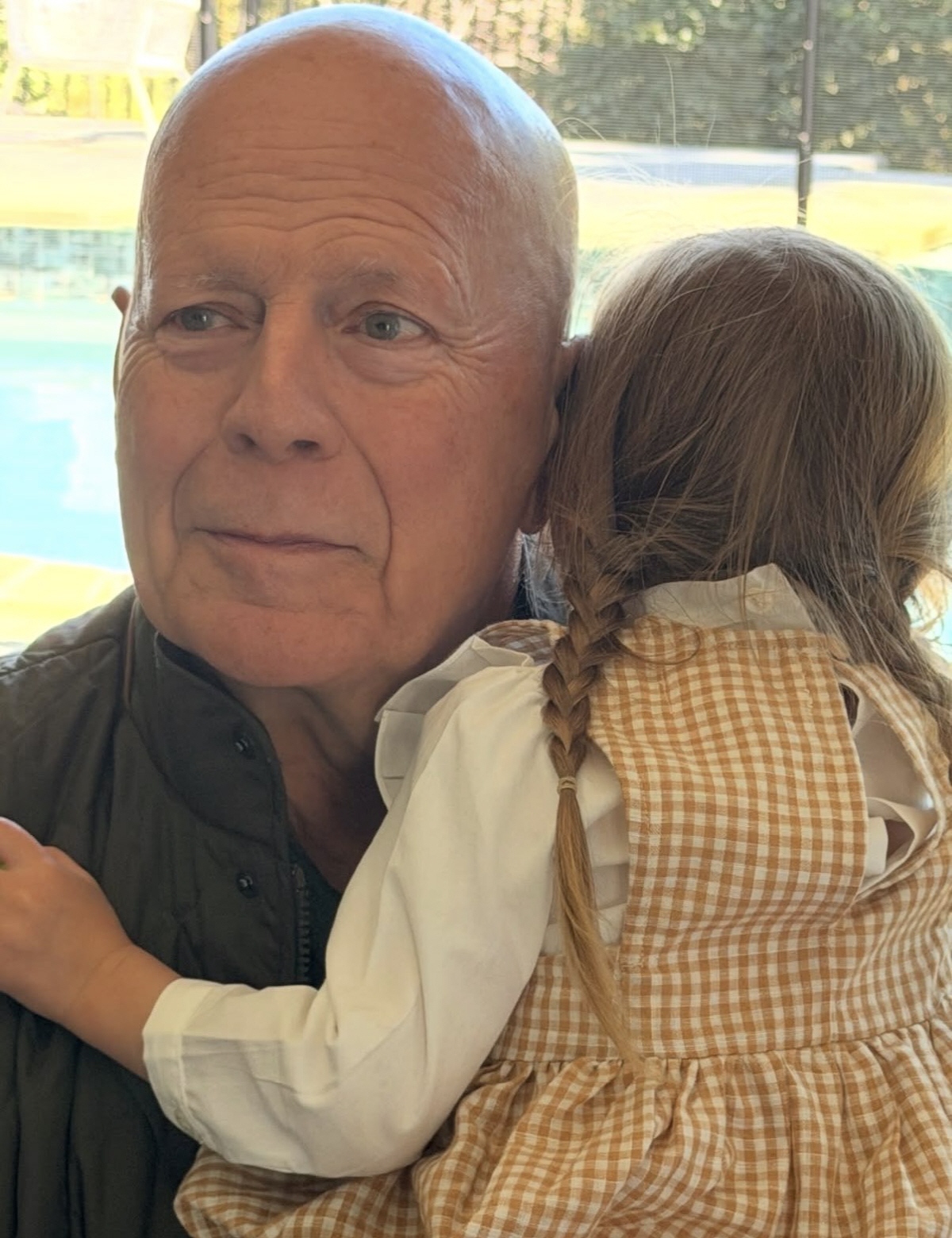 사진 속 브루스 윌리스는 손주를 품에 안고 손주의 볼 뽀뽀를 받으며 한없이 부드럽고 인자한 미소를 짓고 있다.