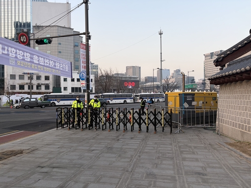 세종대로는 전날 밤부터 전면 통제됐고 사직로와 율곡로는 이날 오후 4시부터 11시까지, 새문안로와 광화문 지하차도도 오후 7시부터 11시까지 통행할 수 없다.