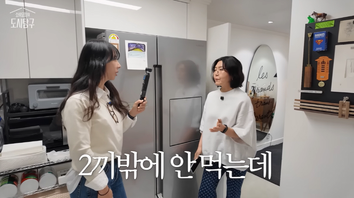 한혜연은 냉장고를 열며 "아이스크림도 건강하게 먹고 싶어서, 생과일 주스를 얼려 먹는다"라며 생과일 주스로 만든 자신만의 아이스크림을 소개했다. 냉장고 안에는 각종 고기, 미역국 밀키트, 김, 버섯쌀, 발사믹 오일 등도 담겨 눈길을 끌었다.