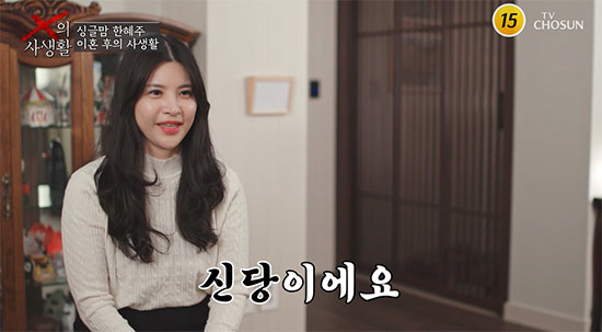 이날 한혜주는 딸을 등원 시킨 뒤 또 다른 거처로 향했다. 누군가에게 인사를 한 뒤, 한혜주는 한복 차림으로 나타나 궁금증을 자아냈다, 이에 한혜주는 "이 곳은 제가 일하고 있는 신당이다"라며, 인사를 건낸 곳은 '신'이었다.