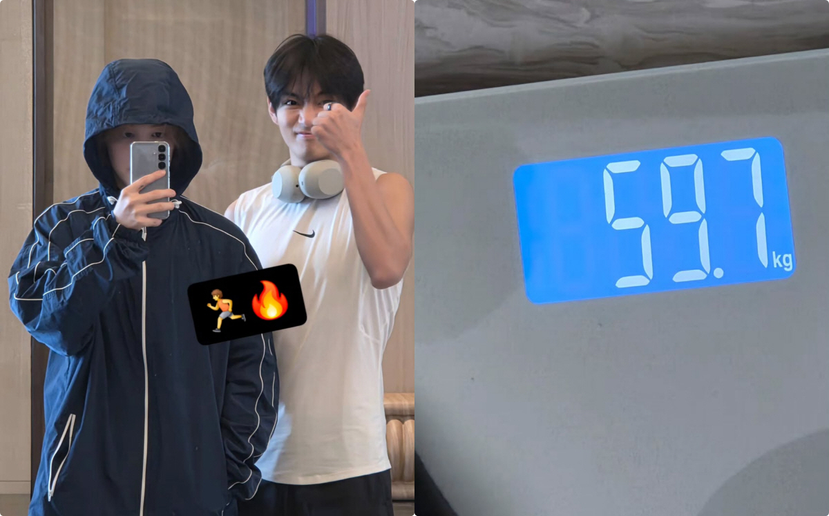 이어 공개된 또 다른 사진에서는 러닝을 마친 뒤 체중계에 올라선 장면이 담겼다. 체중계에 표시된 숫자는 59.7kg으로, 지민이 과거 직접 밝힌 키 174cm를 고려했을 때 상당히 슬림한 체형임을 짐작케 한다.