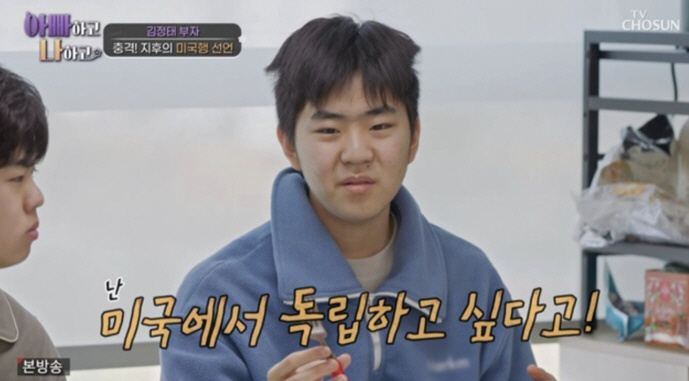 지후의 소원을 들은 김정태는 "엄마랑 아빠 없어도 돼?"라며 걱정했다. 이에 지후는 "미국에서 살겠다는 거지. 엄마, 아빠가 미워서 안 보고 싶다는 건 아니다"라고 답했다. 그러나 지후를 향한 걱정이 커진 김정태는 "조심해야 해. 아파트 렌트비 이런 거 내려면 너 엄청 일해야 해. 몸도 키워야 해"라고 지후의 말까지 끊어가며 갈등을 빚었다.