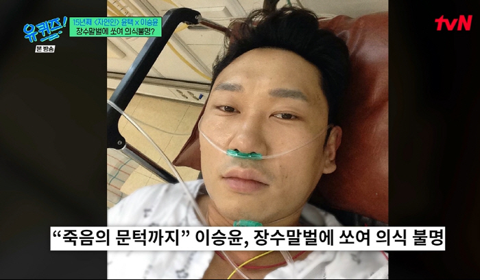 이승윤은 "촬영을 이어가려 했는데 PD가 응급실에 가자고 했다. 산길을 20분 정도 내려가는데 식도가 붓더라. 얼굴이 부어오르고 걷지도 못하고 의식이 혼미해졌다"며 "병원 도착할 때쯤에 의식을 잃었다. 의사 선생님이 정말 위험했다더라"라고 아찔했던 기억을 떠올렸다.
