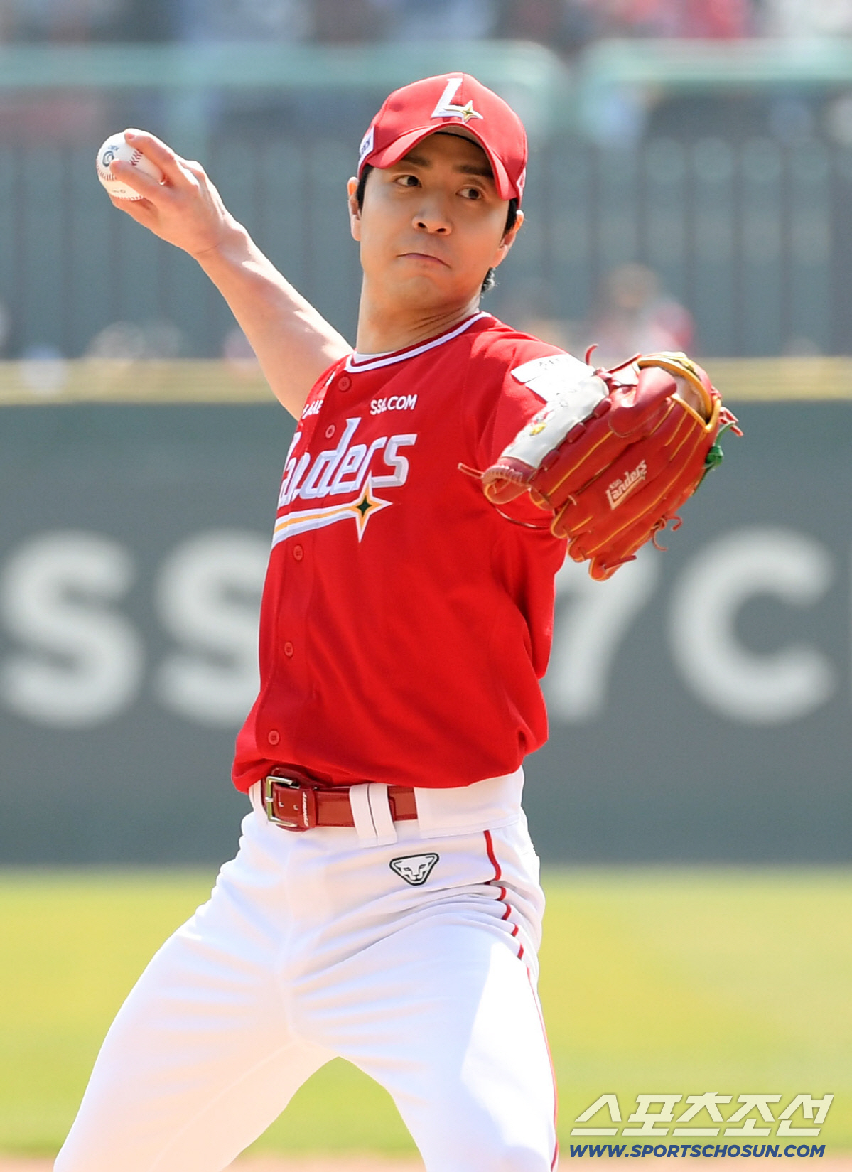 28일 인천 SSG랜더스필드에서 열린 SSG와 KIA의 경기. 손종원 셰프가 시구를 하고 있다. 인천=박재만 기자 pjm@sportschosun.com/2026.03.28/