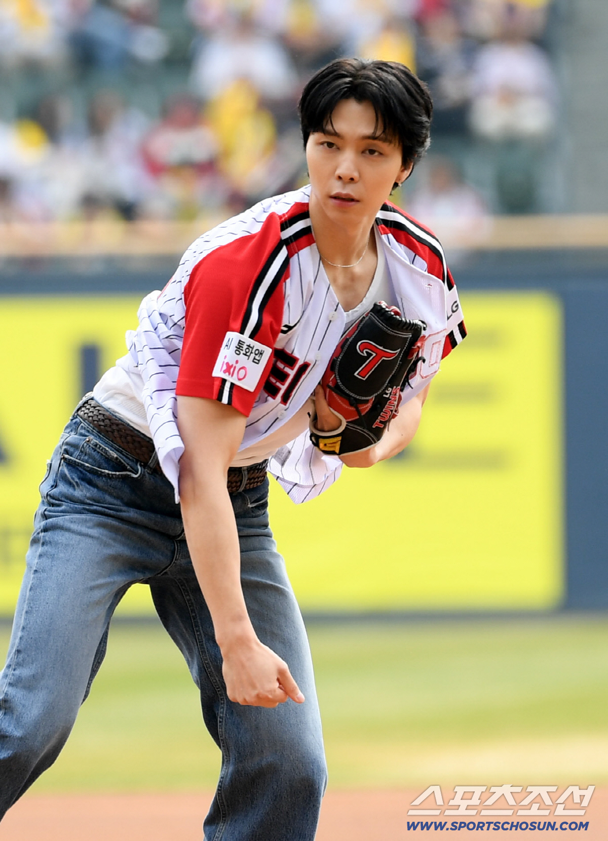 29일 잠실구장에서 열린 LG와 KT의 경기. NCT 쟈니가 시구를 하고 있다. 잠실=박재만 기자 pjm@sportschosun.com/2026.03.29/