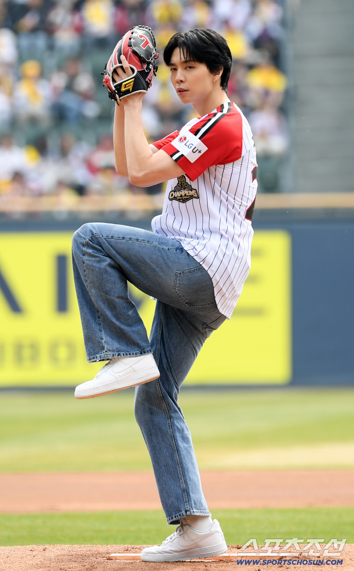 29일 잠실구장에서 열린 LG와 KT의 경기. NCT 쟈니가 시구를 하고 있다. 잠실=박재만 기자 pjm@sportschosun.com/2026.03.29/