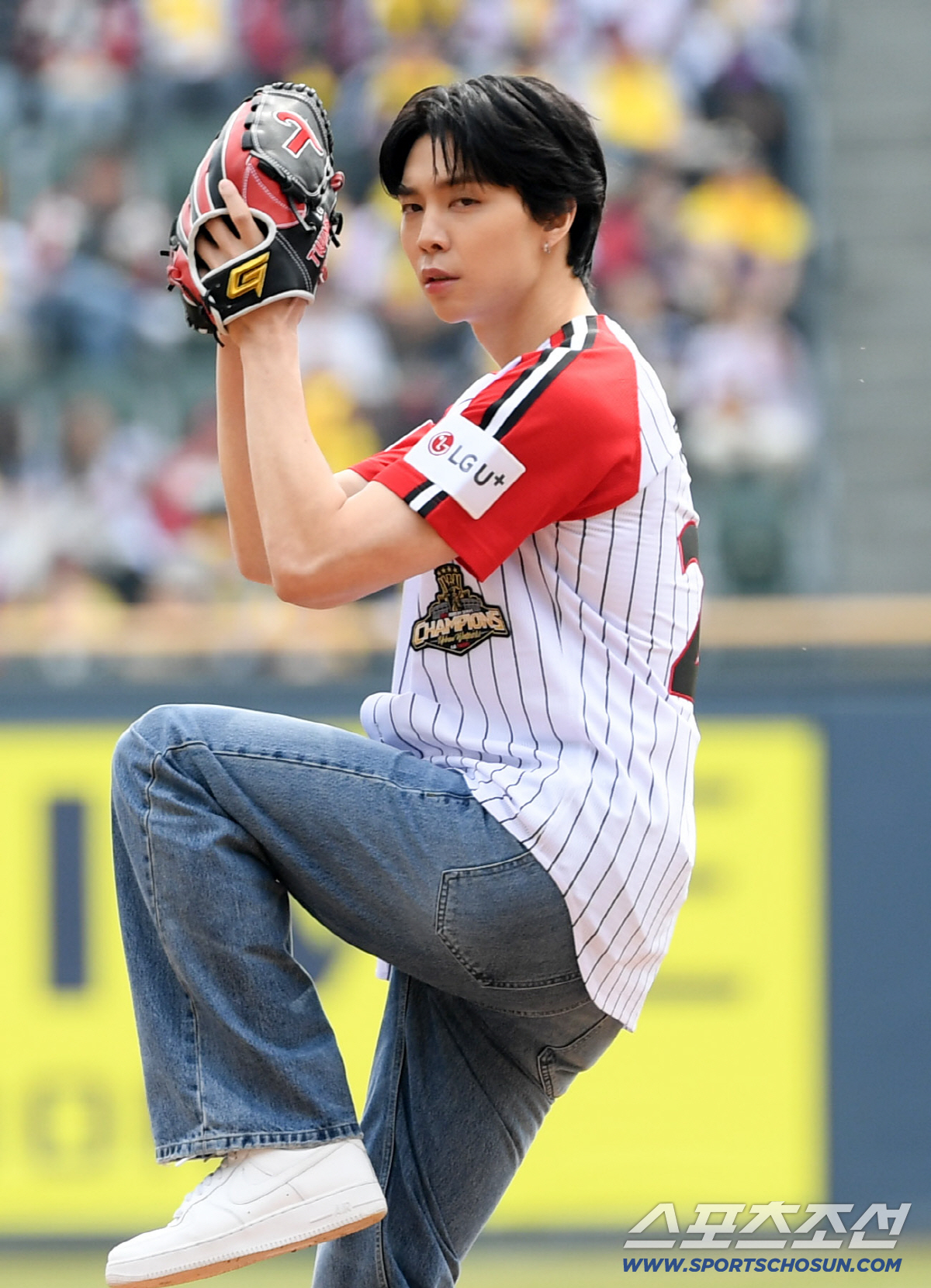29일 잠실구장에서 열린 LG와 KT의 경기. NCT 쟈니가 시구를 하고 있다. 잠실=박재만 기자 pjm@sportschosun.com/2026.03.29/