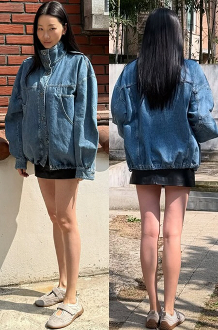 사진 속 장윤주는 미니스커트에 오버핏 청재킷을 매치한 스타일리시한 패션으로 포즈를 취하고 있다.