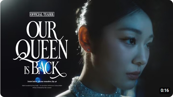 2일 돌고래유괴단 유튜브 채널에는 'OUR QUEEN IS BACK'이라는 영상이 공개됐다. 15초 가량의 티저 영상에는 김연아가 어두운 공간을 지나 빛이 드리운 무대 앞으로 천천히 걸어 나오는 장면이 담겼다. 공개일은 4월 6일로 예고됐다.
