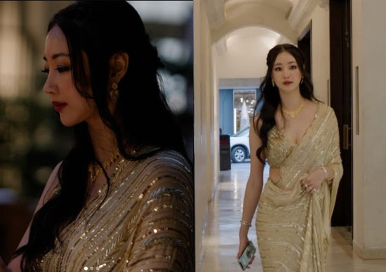 공개된 사진 속 김사랑은 금빛이 감도는 사리(sari)를 우아하게 소화하며 고혹적인 분위기를 자아냈다. 사진 속 그는 은은한 조명 아래에서 식사를 즐기거나 복도를 걸어 나오는 모습으로 시선을 사로잡는다. 특히 몸선을 따라 흐르는 사리 특유의 실루엣과 화려한 액세서리가 어우러지며 김사랑의 고급스러운 분위기를 배가시켰다. 긴 생머리와 절제된 메이크업 역시 전체적인 스타일링과 조화를 이루며 한층 더 우아한 이미지를 완성했다.