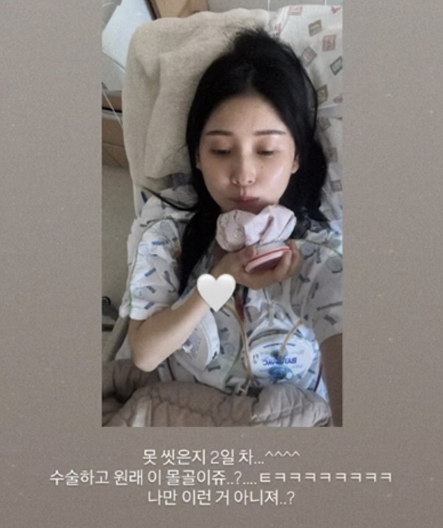 영숙은 2일 "살아나고 있다. 못 씻은지 2일차. 수술하고 원래 이 몰골이죠? 나만 이런거 아니죠?"라는 글과 함께 사진을 공개했다. 앞서 지난 1일 갑상선암 수술을 받은 영숙은 병실에서 회복 중인 모습이다.