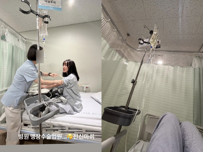 낸시랭은 3일 자신의 개인 계정에 "맹장 수술로 입원… 전신마취"라는 글과 함께 병원에서 촬영한 사진을 공유했다.