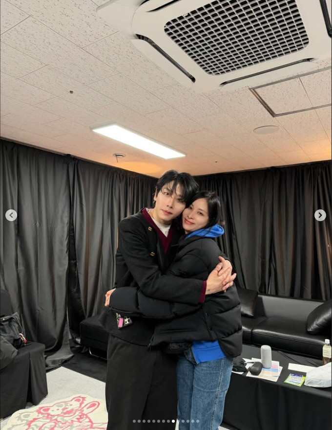 또 다른 사진에서는 남편 장동건과 함께 공연장에서 다정한 포즈를 취하거나, 관객석에서 브이 포즈를 하며 여유로운 모습을 보였다. 특히 무대 뒤에서 만난 박효신과 포옹하는 모습도 공개돼 눈길을 끌었다.