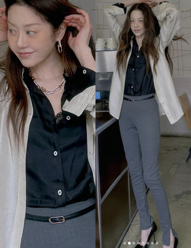 공개된 사진 속 그는 블랙 셔츠와 슬림 핏 팬츠를 매치한 세련된 스타일링으로 포즈를 취하고 있다. 군더더기 없는 실루엣과 절제된 분위기가 어우러지며 고현정 특유의 우아한 매력을 한층 더 돋보이게 했다.