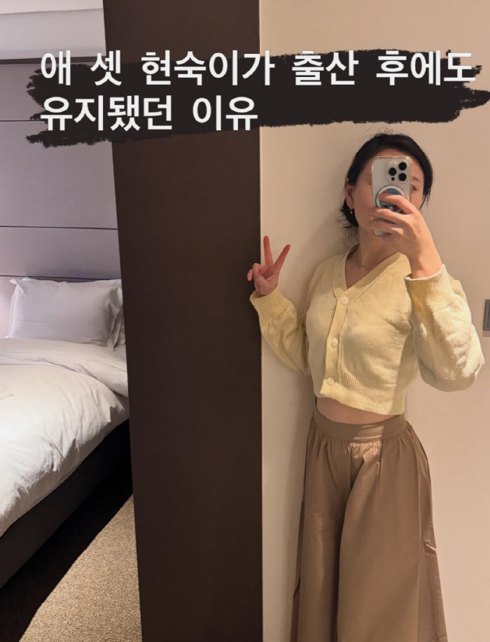 현숙은 "애 셋 현숙이가 출산 후에도 유지?磯 이유"라며 "특별한 거 안 한다. 대신 기준은 있다"고 전했다.