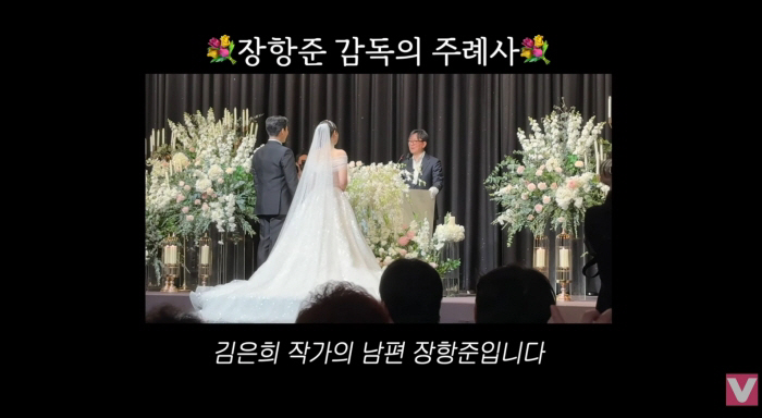 이후 공개된 장면에서는 주례석에 선 장항준 감독의 모습이 담겼다. 그는 "한국이 낳은 세계적인 거장 김은희 작가의 남편 장항준"이라고 자신을 소개하며 직접 박수를 유도해 웃음을 자아냈다.